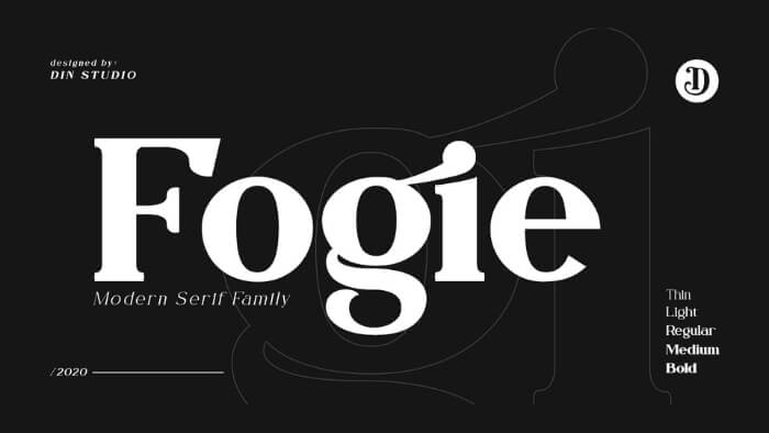 Fogie is a modern serif font family that features 10 fonts and many ligatures and alternates. It has a classy, feminine and retro vibe, but the designers managed to give it a modern and simple look that is perfect for display design and logotypes.
