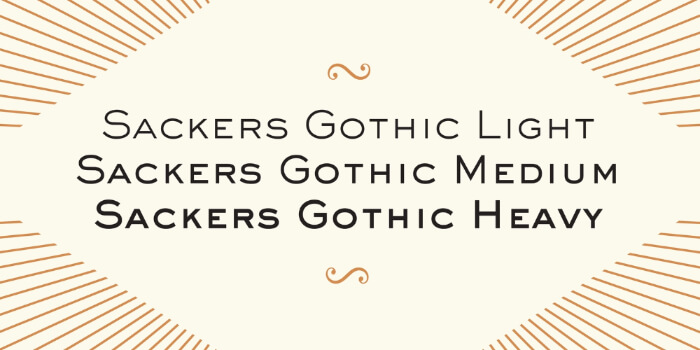 Sackers Gothic is part of a larger Sackers collection of fonts. It is inspired by engraved stationery and social cards by Gary Sackers, a Charlotte, North Carolina intaglio printer. Sackers’ typefaces are initially made into photo-set type, and digitized and released in the late 1980s by Compugraphic.