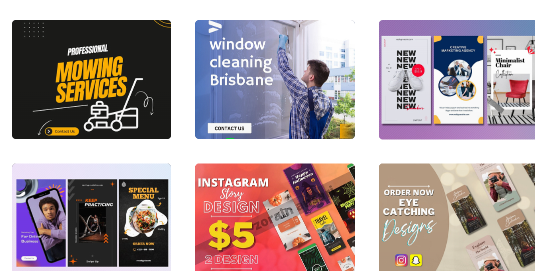 This Canva designer has heaps of experience in creating Canva templates, and she can also teach aspiring designers how to do the same. As you can see her portfolio is quite versatile, and has a colorful, modern flair. So whether you’re looking for templates, social media graphics, ads, or more - she’s a great designer to contact.