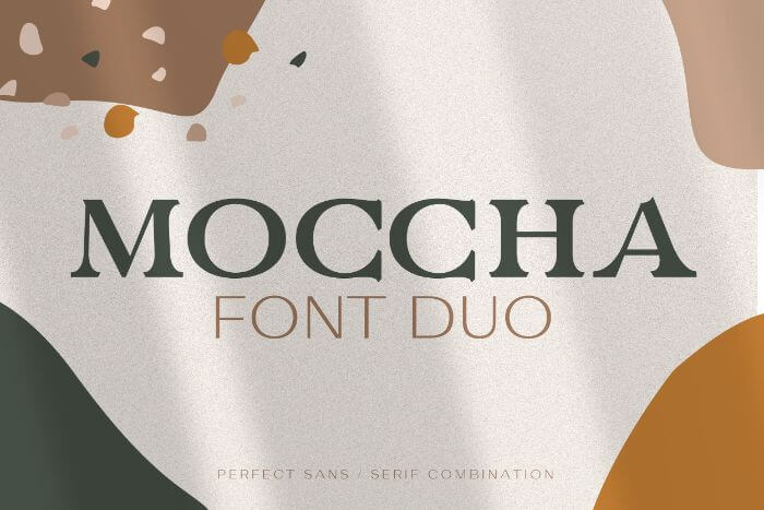 Moccha is a font duo: it consists of both a classic serif and modern sans serif version that are perfectly paired together. It also comes with 9 logo mockups that the creator gives for free, which you can alternate in Adobe Illustrator for your business’ needs.