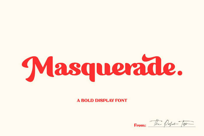 Masquerade is a bold serif font created from a combination of script letters and more defined geometric shapes in other letters. It features contextual alternates, beautiful ligatures and stylistic sets with just a hint of a retro feel.
