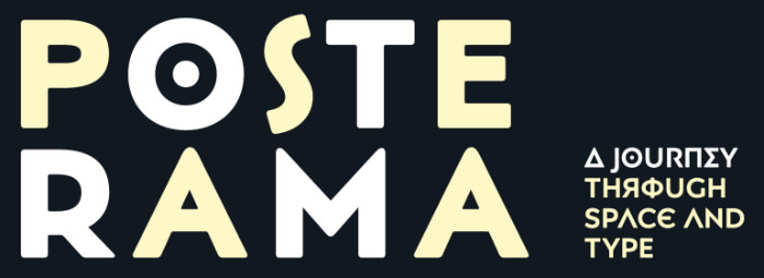 The Posterama designer Jim Ford calls this typeface family a “true journey through space and time”. Each Posterama family contains 7 weights from Thin to Ultra Black, in 9 distinct families. It is a versatile and unique typeface family because it has eight alternative display families and a rich collection of different glyphs. It is inspired by a whole century of futuristic elements in art, architecture, poster design, and science fiction.