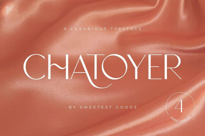 Another luxurious and feminine font with a seductive appeal. Chatoyer has beautiful, thin, and rounded swashes and numerous creative ligatures and nested or overlapping caps.