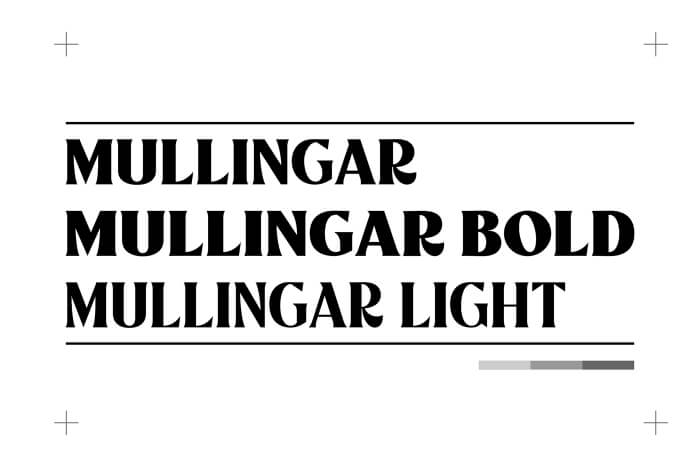 Mullingar is a display typeface inspired by letters used in old advertisements and sign-painting culture. The creators added a modern touch to keep it relevant. It is built from a bold and blocky base, unique serif combinations, clean and smooth curves, and sharp edges.