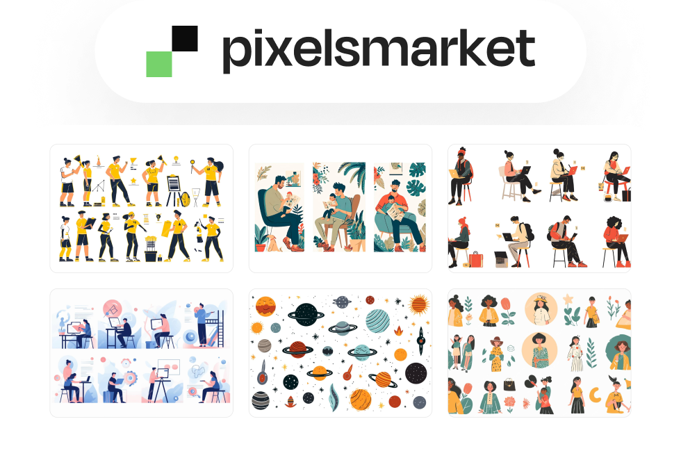 There are thousands of unique designs to choose from, with new ones added regularly. You can find illustrations in 5 different styles to match your brand image and need - from fun outline designs to artsy monochromatic ones.