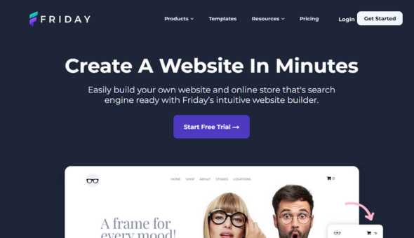 This relatively new website builder is a great option to try for first-time business owners. There are several reasons for it. Friday is very easy to use and has a straightforward pricing plan - just one plan for $50 a month.