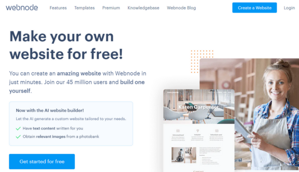 This slightly less known free website builder is a great user-friendly option to try. It has some terrific free website templates and a powerful AI tool that will make design and content creation a breeze.